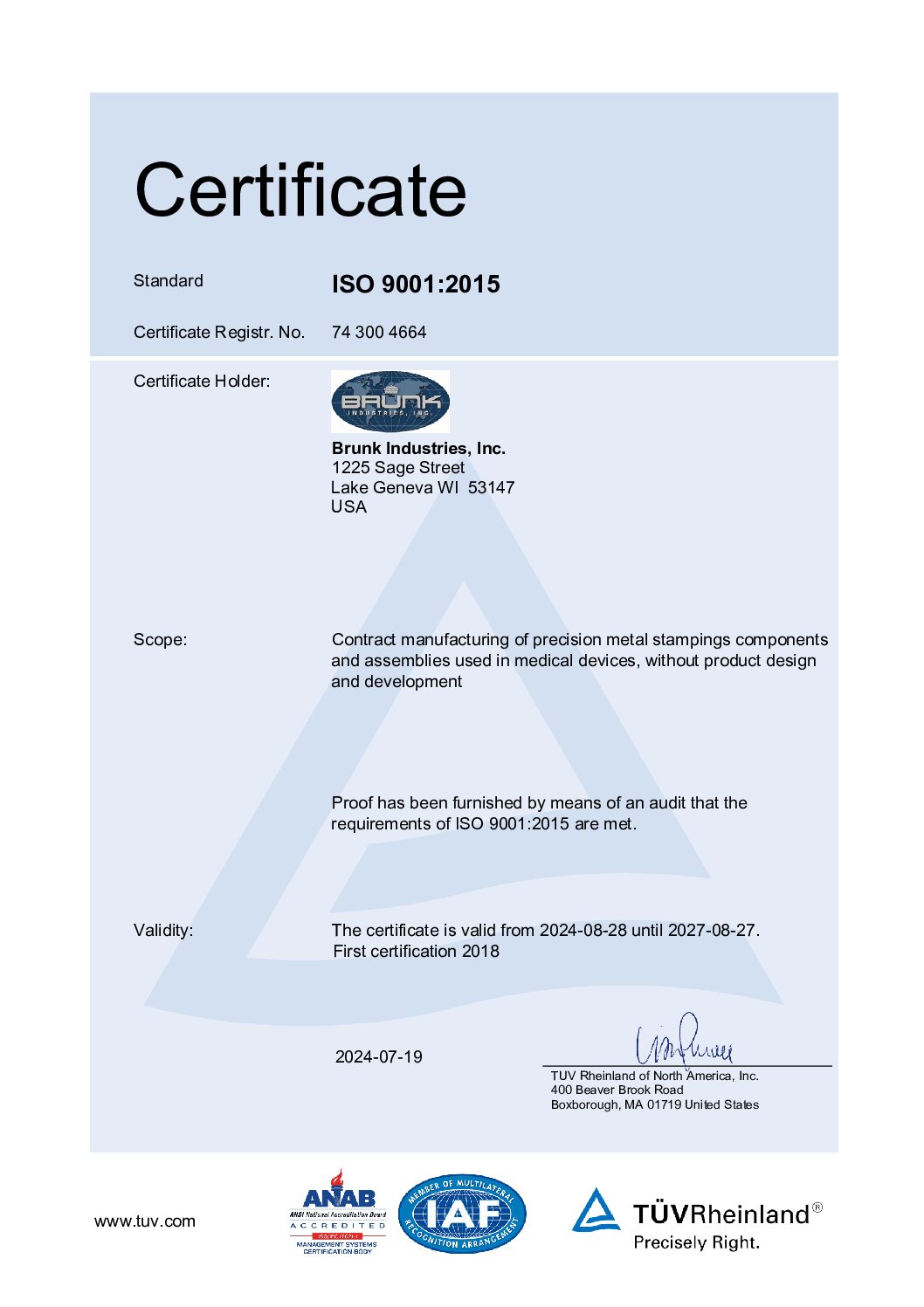 Standards and certifications offer a common framework for quality. ISO 9001:2015 sets a general quality management framework, while ISO 13485:2016 pertain to medical devices. For measurement systems, ISO/IEC 17025 supports laboratory competence. In regulated markets, FDA expectations require documented evidence of medical-grade materials, process validation, and robust traceability. Certification to ISO 9001:2015 and ISO 13485:2016 signifies strong governance and continual improvement, aligning expectations among customers, suppliers, regulators, and the FDA. Brunk adheres strictly to these frameworks, establishing our team as a dependable leader in manufacturing quality control.